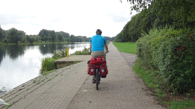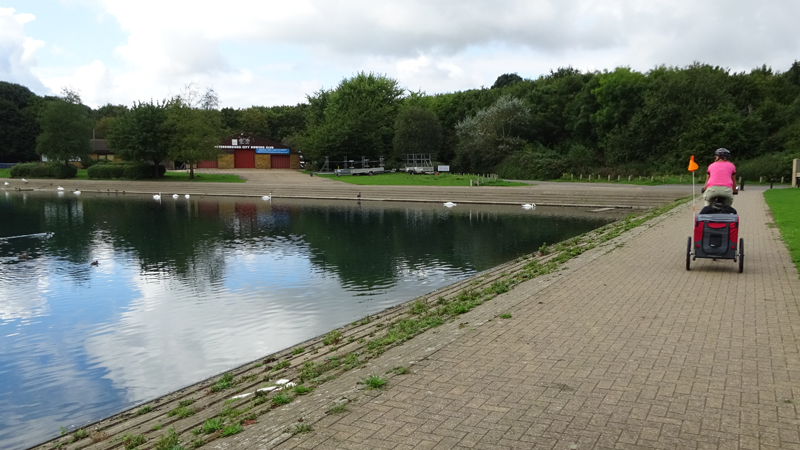 Gelukkig zijn we daarna snel op de route en fietsen we richting Ferry Meadows Park. Dat is heel groen en ook wel mooi om te zien.