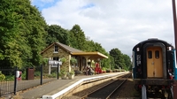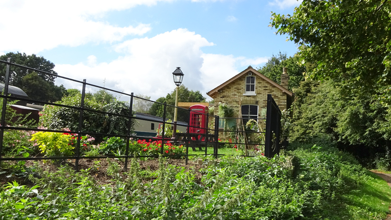 Inmiddels is het 13.45 en rijden we langs een stationnetje met een soort museum erbij. Ferry Meadows staat er op de borden. We rijden immers ook door Ferry Meadows park dus dat kan wel kloppen. Het is wel aardig om te zien dus we stoppen weer even om te kijken.