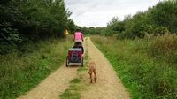 Vanaf Castor rijden we een stukje over een hele rustige weg richting de Castor Hanglands. We hadden al besloten om daar een stukje doorheen te rijden maar we zien maar een heel klein deel eigenlijk. Castor Hanglands is een nature reserve dat al heel lang bestaat en bijzonder is vanwege het feit dat er zowel bos is als grasland, scrub en wetlands. Van alles wat dus eigenlijk. Wij zien vooral het stukje met bomen en gras maar het is wel leuk om even doorheen te rijden en natuurlijk kan woefje hier ook lekker even loslopen.