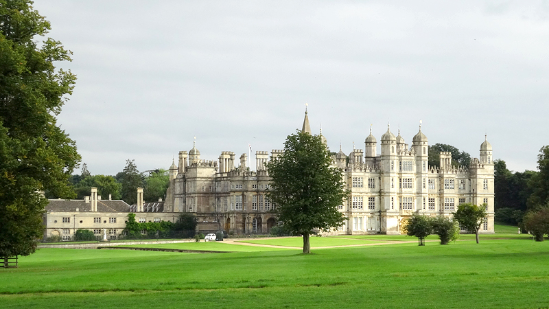 Na Barnack en Pilsgate rijden we langs Burghley House. Aanvankelijk rijden we er voorbij maar het hek staat open en we keren terug om te kijken of we dichterbij kunnen komen om te kijken en ook om door het park te fietsen. Burghley House is in 1554 gebouwd en over een periode van 32 jaar uitgebreid tot wat het nu is. We kunnen er niet in vanwege woef maar het is prachtig om te zien.