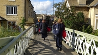 We kunnen nog veel meer bekijken maar voor nu is het genoeg en we rijden het park rond 4 uur weer uit op weg naar Stamford. Dat is een vrij groot stadje maar wel erg mooi en er is ook veel te zien. In het stadje moeten we een lastig bruggetje over en dat valt niet mee met de kar. We kijken onze ogen uit naar de schoolkinderen die er lopen in lastige uniformen met lange rokken.