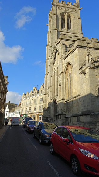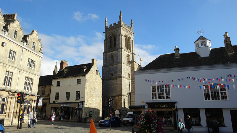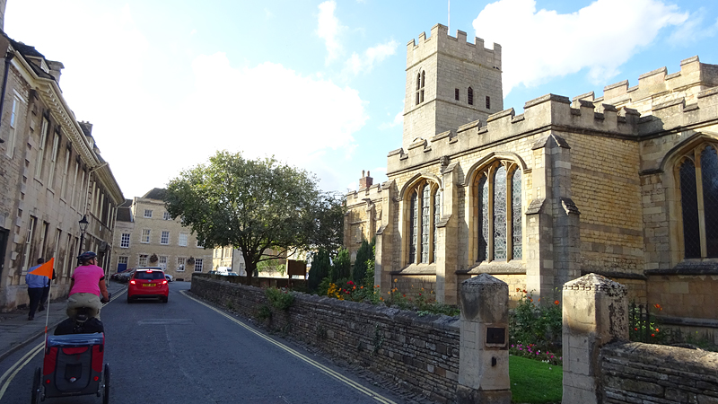 In Stamford is het best druk vanwege het verkeer. Blijkbaar gaat iedereen naar huis. Maar we kunnen gewoon rustig fietsen en de auto’s zijn niet vervelend en gevaarlijk voelt het ook niet. Het is merkwaardig dat we de eerste route zoveel stress hadden van het verkeer rond Kelso. Nu gaat alles goed en kijken we onderweg ook naar alles wat er te zien is. Er zijn vrij veel kerken en kerkjes in Stamford.