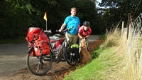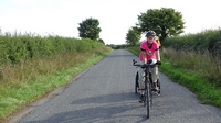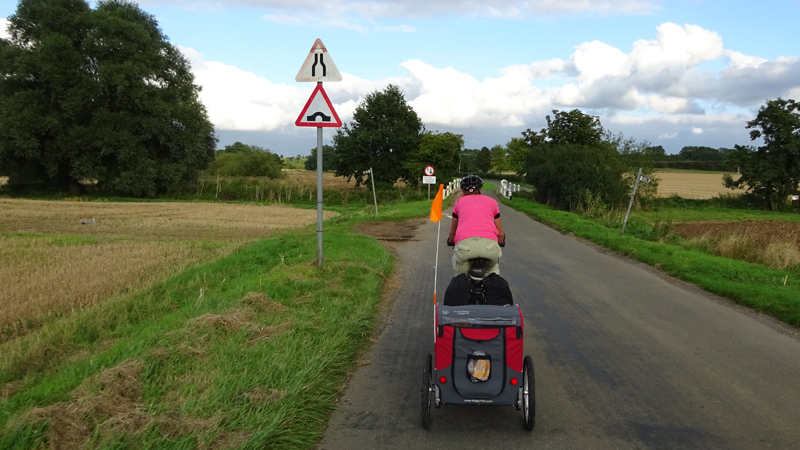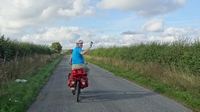 Vanaf nu zal de route wel opschieten als we eenmaal over dit hobbeltje zijn. De weg naar Baston waar we gaan slapen kan niet anders dan vlak en open zijn en aangezien er geen wind staat, zal dat dus allemaal wel meevallen. We stappen dus weer op en fietsen door.