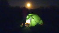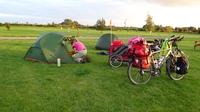 Eigenijk zijn we best moe. Er staat 60 km op de teller na deze eerste dag en om 10 pm kruipen we de tentjes in en gaan slapen.