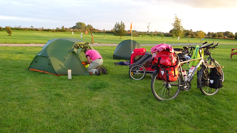 Na een klein half uurtje is alles klaar. De tentjes staan en de spulletjes zijn opgeborgen waar ze moeten zijn. Straks is het immers donker dus we moeten wel een beetje goed voorbereid zijn voor straks. Misschien had ik nog even moeten douchen maar ik heb me alleen even snel omgekleed. Niet handig misschien want ik ben best plakkerig. Ondertussen is de eigenaar ook gekomen en betalen we 13 pond voor onze 2 tentjes. Dat is dus lekker goedkoop vandaag. Het ziet er overigens allemaal heel nieuw en netjes uit hier. Echt een mooie plek en ik ben blij dat dit goed uitpakt want je weet maar nooit als je achter de laptop aan het zoeken bent naar iets leuks.