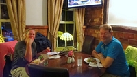 Het is lekker warm in het restaurant en we genieten van ons eten. Ondertussen laden we de telefoon op, de navigatie en de Garmin. De telefoon ligt in het stopcontact en de rest zit in de Powerbank die op tafel ligt. Dat gaat allemaal prima gelukkig en alles doet het zoals gepland.