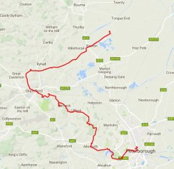Langzamerhand kwam er schot in het plan. De route kreeg vorm, ik zocht naar campsites en pubs en stap voor stap kwam ik dichterbij een echte tocht waar nog wat te zien zou zijn ook. Toen ik eenmaal een route had gemaakt en een campsite had gevonden met een restaurant dichtbij voor avondeten, rekende ik uit waar we zouden moeten/kunnen starten op de eerste dag en welke rijrichting het meest logisch zou zijn. Starten in Peterborough leek leuk, omdat we daar zouden kunnen parkeren en dan eerst de cathedral zouden kunnen bekijken (zonder fietsen) en daarna op pad zouden kunnen gaan. De route van de eerste dag zou dan ongeveer 50 km zijn en dat is genoeg met de korte dagen nu en de trip naar Peterborough in de ochtend.
