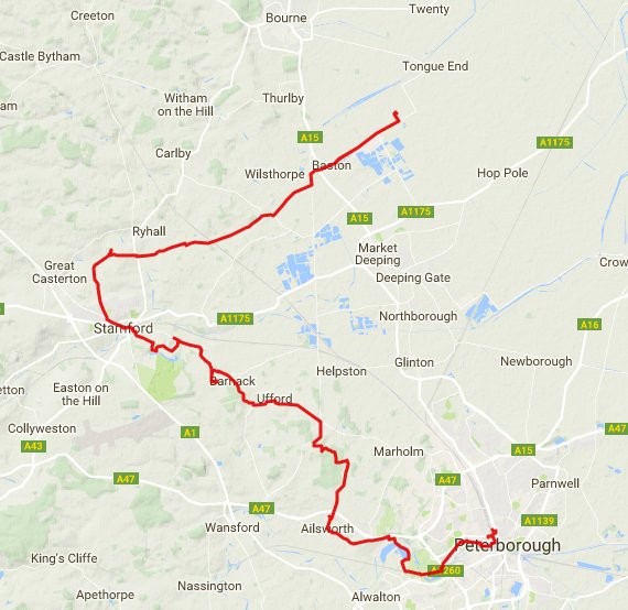 Het duurde dus even voordat ik iets gemaakt had, want ik had eigenlijk weinig inspiratie en wist natuurlijk totaal niet hoe de omgeving zou zijn. Waar wilden we heen? Bij de kust? Boven of onder Hull? Wat wilden we eventueel zien of doen? Ik keek boven Hull maar besloot dat niet te doen omdat we eventueel nog eens vanaf de ferry willen fietsen. Dat gebied dus niet, dus ging ik verder kijken aan de andere kant van Humber Bridge. Rond Skegness dan? Maar zou dat niet veel te open en te saai zijn? Ik zag wel wat regionale fietsroutes maar ik twijfelde. Ik keek verder en kwam uit bij plaatsen als Peterborough en Stamford. Zou dat iets zijn? Ik zag dat er op zich wel nationale fietspaden lagen in dat gebied en begon maar eens te tekenen en de afstanden te bekijken. Het zou ook allemaal een beetje te doen moeten zijn in 2 dagen plus erheen rijden op de eerste dag.