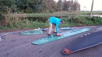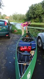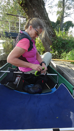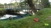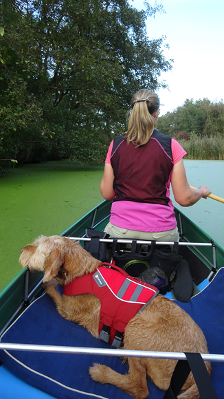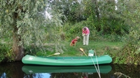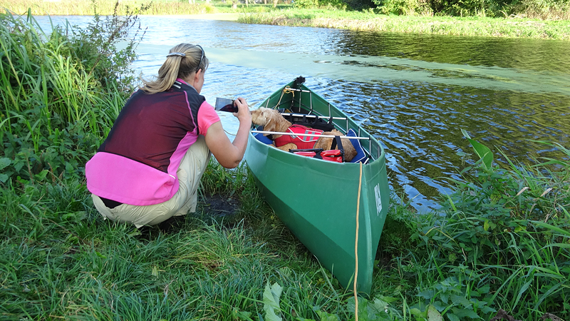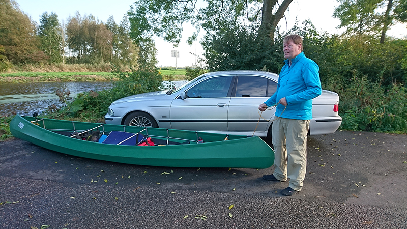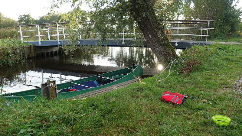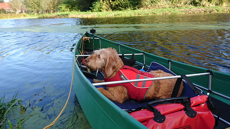 Mooi op tijd komen we weer bij de auto aan en leggen de kano op de kant. Het afbreken en opruimen gaat snel en als S. de kano inpakt en oprolt, laat ik woef nog even uit. Daarna rijden we tevreden naar huis. Altijd weer ontspannend zo even het water op!