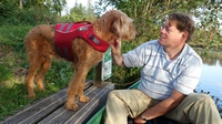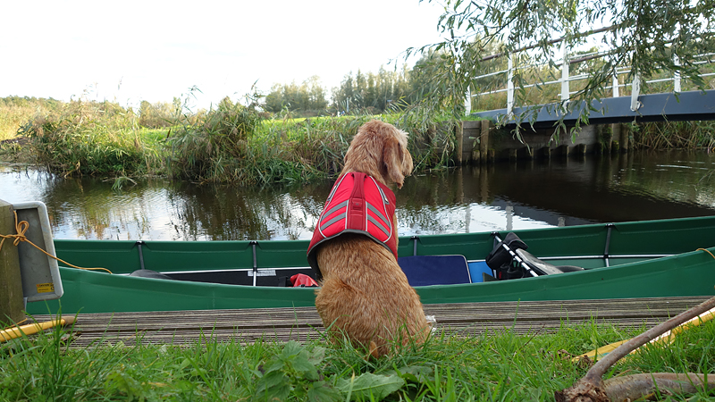 Als we klaar zijn en opruimen voor vertrek, zit wafje vast bij de boot zodat we niet zonder haar vertrekken. Ze stapt er ook gewoon in en uit en dat is echt zo grappig. Alsof ze nooit anders gedaan heeft!