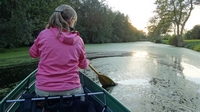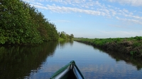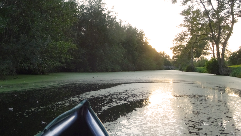 Het water is goed. Er ligt aan het begin wel wat kroos maar niet zo idioot dik als in augustus toen we hier waren. Dat scheelt echt en we schieten ook lekker op.