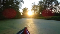 We varen de zon tegemoet en genieten van de rust. Helaas staat de wind een beetje verkeerd waardoor we wel verkeer horen en dat is jammer. Absolute stilte heb je eigenlijk nooit in Nederland. Maar dit is zo ook al prettig omdat er niemand meer op het fietspad fietst.