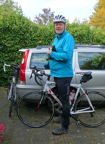 Het is lekker weer als we vertrekken en bijna windstil. Echt bijzonder zo eind oktober! Eerst even over de dijk een stukje. Ik heb een lange wintertight aan die eigenlijk te warm is, een shirt met dunne lange mouwen en mijn castelli vest. S. draagt een softshell van salomon en een shirt met korte mouwen. Maar het softshell was eigenlijk een beetje warm. Ik ben dus blij dat ik vorige week een dun shirt met lange mouwen kocht.