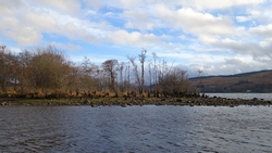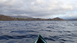 Helaas hebben we al een dag voorbij laten gaan doordat we te laat thuis waren en ook de dag van aankomst zou geweldig zijn geweest om te varen. Maar vandaag besluiten we om bij de buurman te vertrekken vanaf de jetty. Gisteren hebben we daar al even gekeken en gezien dat het wel te doen moet zijn om het water in te komen. Ons doel is eigenlijk Kilchurn Castle. Dat willen we proberen te halen vanaf het hotel hier verderop. Ook die jetty hebben we al bekeken een paar dagen geleden. Vanaf daar is het ongeveer 5 km varen en met een stop halverwege op een eilandje waar nog een ruine te zien moet zijn, lijkt dat eventueel haalbaar. Maar voor vandaag een babyrondje als verkenning en kennismaking met het meer.