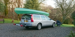 Vorige week hebben we een eerst korte rondje over het meer gevaren met redelijk slecht weer. Dat was eigenlijk een kennismaking en de boot ligt inmiddels gewoon klaar voor vertrek. De uitdaging voor deze keer wordt ook nog het vervoeren van de kano op de auto. Dat doen we nooit want we bouwen altijd ter plekke op. Maar om tijd te sparen, hadden we nu de kano opgebouwd en in de garage gelegd voor de volgende trip. Gisterenavond hebben we dus de manual van de auto tevoorschijn gehaald om te kijken hoe we eigenlijk een sleepoog moeten monteren. Gelukkig ligt alles netjes in het reserve wiel dat op de achterbank ligt. Kapje losmaken, schroef erindraaien en voila een sleepoog. Mmm we hebben er dus maar eentje dus we besluiten het fietsenrek achterop te gebruiken voor de achterkant van de kano. Natuurlijk hebben we wel al lang geleden goede spanbanden gekocht die echt bedoeld zijn voor veel gewicht en kracht dus dat is geen probleem. Ook had ik nog bedacht dat we de spanband van de kanokar zouden kunnen gebruiken om de kano extra te bevestigen rond de middenstangen.