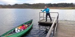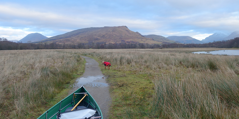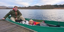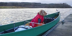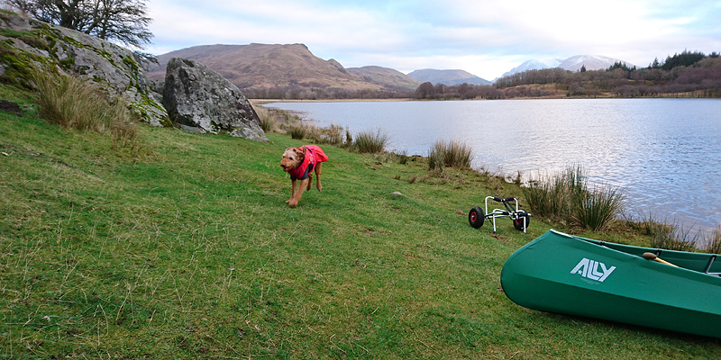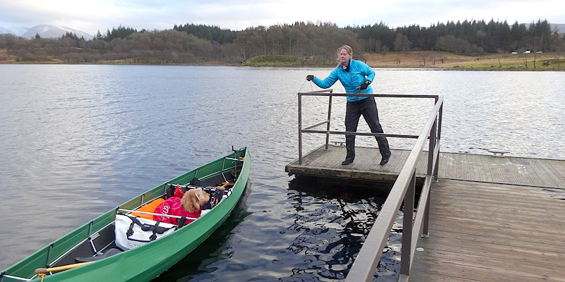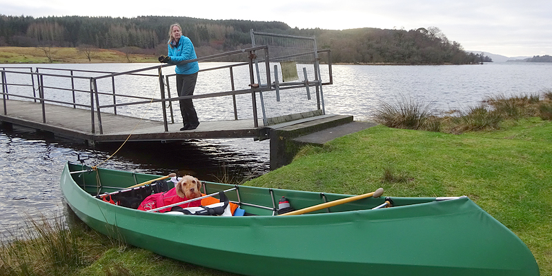 Na bijna 7 km is het genoeg en varen we terug naar de jetty van het castle. Wij stappen weer eerst uit en laten woefje in de boot zitten. Daarna trekken we de kano weer langs de jetty naar de kant waar woef ook uit kan stappen.