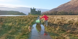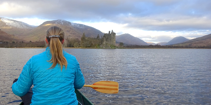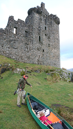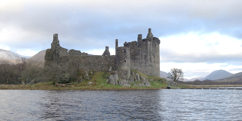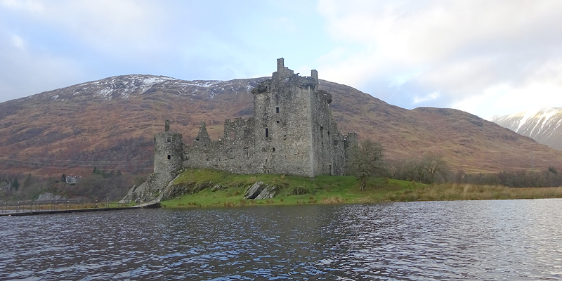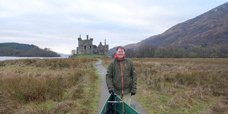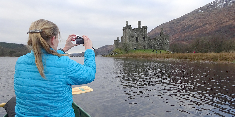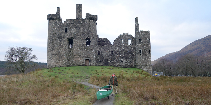 In de ochtend gaan we dus maar eens proberen om de kano op de auto te leggen. Het miezert aanvankelijk maar de voorspelling is droog weer over een uurtje en weinig wind dus die kans gaan we pakken. We rijden naar Kilchurn Castle want ook al is het maar 5 km van de jetty van het hotel waar we eerder gekeken hebben, als we het niet halen vanwege de wind of de golven hebben we alsnog het castle niet gezien!