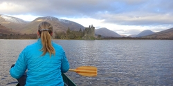 We varen nog een stukje verder. Op de heenweg zullen we wind tegen hebben en op de terugweg wind mee dus we kunnen rustig nog een stukje verder peddelen zonder dat we straks in de problemen komen. Dat was ook een van de redenen om toch te starten bij het castle zelf. Als onervaren loch peddelaars moet je geen gekke planning maken die niet klopt!