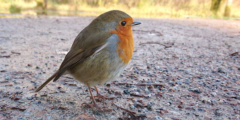 Ik vind de rit naar het castle nog enorm lang duren. Als je bedenkt hoe dichtbij het eigenlijk is over het water zeker! We moeten nu helemaal omrijden en dat duurt vrij lang. Het is de eerste keer dat ik met de kano op het dak rijd dus ik vind het ook nog een beetje vreemd natuurlijk. Maar uiteindelijk komen we heelhuids aan op de parkeerplaats bij Kilchurn Castle. Gelukkig staat er maar een andere auto dus kunnen we rustig de kano van het dak halen. Als ik uitstap, zit er een roodborstje naast de auto. Die is zo nieuwsgierig dat ik gewoon met de telefoon die ik in mijn zak heb een foto kan maken terwijl hij nog net niet tegen het schermpje tikt. Gek beest. Daarna hebben we alles snel klaar voor de de trippel naar de jetty van het castle. We zijn hier jaren geleden geweest en denken te herinneren dat er een jetty ligt waar we zouden kunnen instappen.