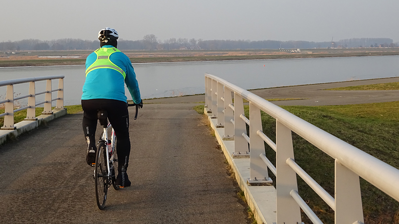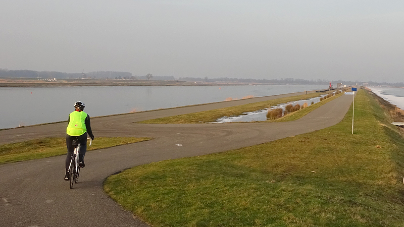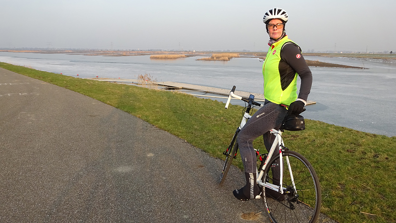 Vanmorgen heb ik een 20 km rondje gelopen en nu gaan we even een stukje fietsen. Op 3 december 2016 hebben we voor het laatst op de racefiets gereden dus nu is een mooi moment! Aanvankelijk wilde S. eigenlijk niet… te koud. Welnee, het is helemaal niet koud en na overleg over de kledingkeuze gingen we ons dan toch klaarmaken voor vertrek. Op mijn racefiets zat nu voor het eerst de nieuwe garmin Edge 810 die ik van S. kreeg onder de kerstboom. Via iemand op een forum kocht ik een standaard met bel en dat zag er prima uit. Ik was erg benieuwd of de Edge het nu gewoon goed zou doen en niet uit zou gaan zoals in Schotland steeds gebeurde met de oude software.