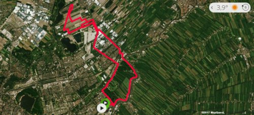 We rijden rustig verder en ik probeer op stukken een hoge cadans te trainen. Voor het eerst zie ik nu netjes de cadans voor me op het scherm van de Garmin. Ideaal! Tot nu toe doet alles het prima overigens. Cadansmeter en hartslag zijn gekoppeld en alles doet het goed. Ook de auto pauze lijkt te werken.