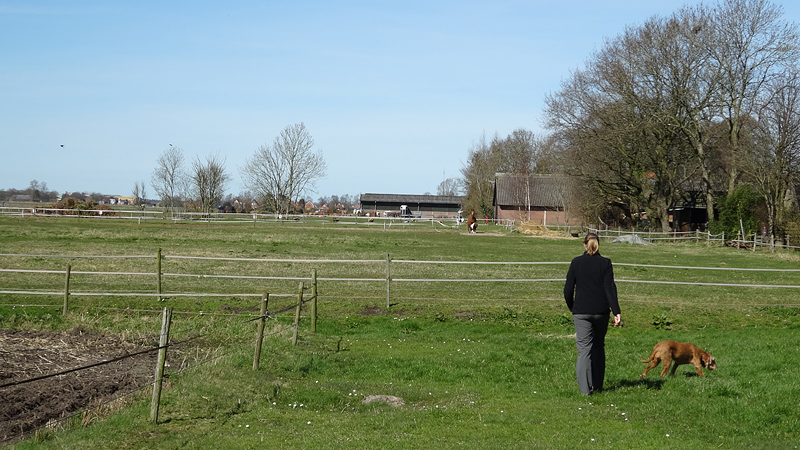 De Fuji fietst prima en ook al voel ik wel dat het zadel beweegt, het valt niet op als storend eigenlijk. Verder schakelt de fiets redelijk goed op 1 versnelling na. Straks gaan we in ieder geval de ketting vervangen en de derailleur afstellen. Keurig op tijd rijd ik bij de boerderij het terrein op. S. is er natuurlijk al en wafje loopt al binnen rond.