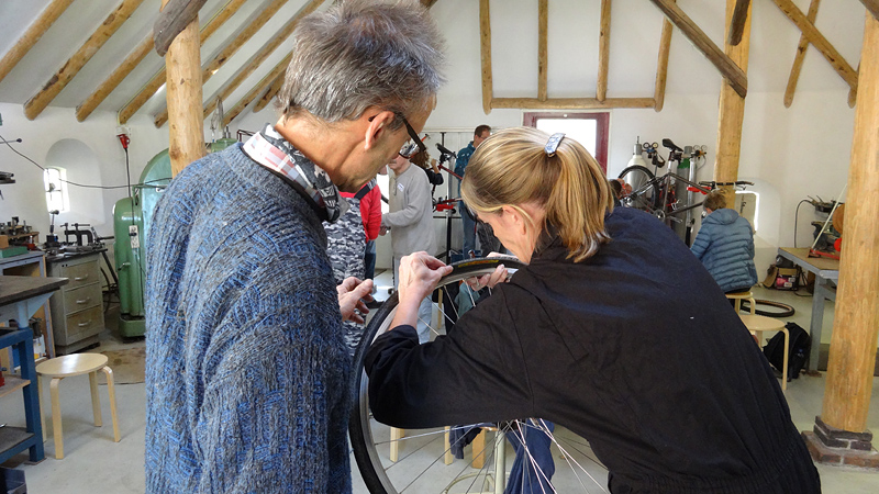 Waarschijnlijk gaan we in mei nog een weekend doen voor ‘gevorderden’. Dan willen we in de middag op onze eigen fietsen proberen een spaak te vervangen aan de cassette zijde (cassette er dus af) en nog wat dingen. We waren nu niet wakker genoeg blijkbaar om te bedenken wat we wilden proberen, want we vergaten ook te meten welke spaken we nodig zouden hebben onderweg bij breuk en die mee te nemen. Op naar de volgende keer. Misschien kunnen we dan ook wat meer fietsen.