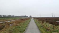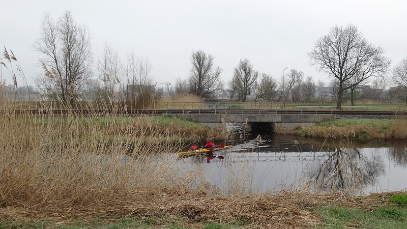 Jammer genoeg is de ochtend ineens grijs geworden hoewel de dag zonovergoten startte. Niets aan te doen, het is droog en er is geen wind dus ik vertrek, gewapend met de route op mijn Teasi navigatie. Ik maakte van te voren een mooie route door een natuurgebied dus ik ben erg benieuwd. Al snel ben ik op weg en direct ben ik al op een mooi fietspad, van de weg af en helemaal stil. Ik zie een paar hardlopers en tot mijn plezier zie ik iemand in een kayak in het water.