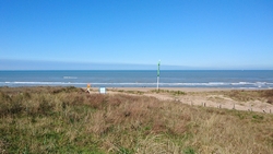 Ik besluit even te stoppen op de boulevard om op de kaart te kijken. Tsjee wat ben ik een eind van huis eigenlijk. Terug fietsen heeft geen zin denk ik, verder rijden is nog een gigantisch stuk. Ik kijk naar de zee. Wat nu? Ik heb geen eten bij me. Gelukkig wel 3 verdwaalde dextro’s en daarvan neem ik er dan maar eens 2 nu. Ik zal toch in ieder geval nog verder moeten. Ik kijk nog eens naar de zee en maak een kiekje. Waarom ook eigenlijk niet. Dat achterlijke gejakker. Klik.