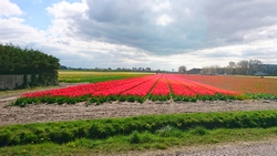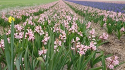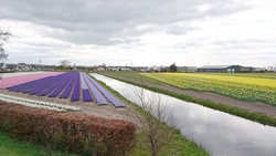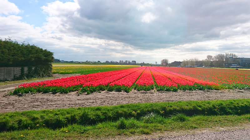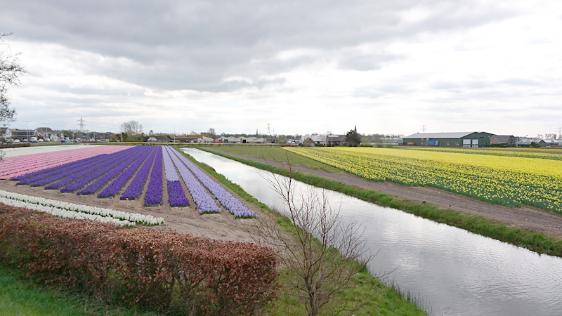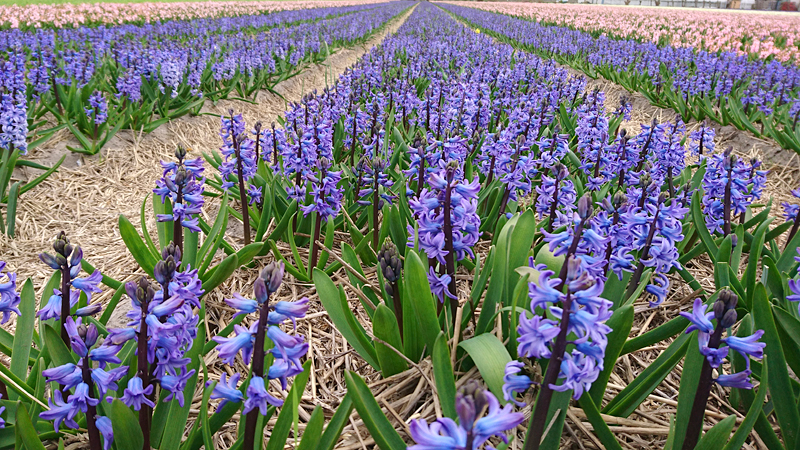 Ineens rijd ik tussen de bollenvelden. Wat leuk! dat zou ik nou totaal gemist hebben als ik de kortere route had genomen. De hyacinthen ruiken heerlijk en ik geniet er echt van. Ik besluit toch even af te stappen voor een foto.