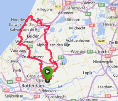 Ik had er wel zin in en de afstand leek ook wel goed te doen. Het begin vond ik niet zo mooi omdat ik dat al ken van mijn rondjes naar Den Haag. Ik presteerde het wel om verkeerd te rijden bij de Rottemeren. Ik dacht echt dat het bordje linksaf wees maar bij de eerste kruising stond er niets meer dus keerde ik maar om nadat ik op de papieren route had gezien waar ik heen moest. Jammer maar helaas. Verder ging het richting Zoetermeer en daar was de route even onduidelijk. Ik kwam bijna in botsing met een groep die het ook niet wist maar alles ging goed. Ik heb de pest aan groepen ook al fiets je veel makkelijker in een soort peloton. Vreemd genoeg haalden ze me eerst in maar even verderop kon ik niet anders dan aanhaken. Trager ging niet lekker en sneller kon natuurlijk niet. Ik besloot dus maar aan te haken en dat fietste wel aardig. De achterste twee mannen praatten af en toe even met me.