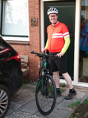 Na 15 km klok ik af en rijd nog een paar honderd meter rustig naar S. die al klaar staat. Hij heeft de pijpen van zijn nieuwe fietsbroek afgeritst en dat is slim. Volgens mij is dat een prima koop die broek. Helaas paste ik er niet in (te korte pijpen).