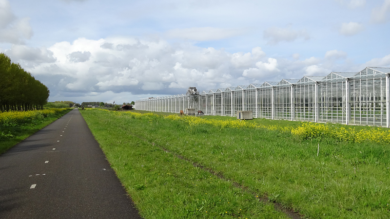 Na Delfgauw rijd ik richting Pijnacker en kom ik weer door een groot kassen gebied bij Bleiswijk. Het is hier werkelijk doodstil. Ik begrijp niet waar alle deelnemers gebleven zijn. Zouden ze kortere routes doen? Of later vertrekken misschien? Ik vind het prima want er is niets vervelender dan te worden ingehaald door een groep schreeuwende racefietsers. Dit is echt heerlijk zo. De route schiet wel een beetje te snel op naar mijn zin.