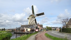 Na het Balijbos gaat de route naar Nootdorp en rijd ik tussen de kassen. Ik weet dat ik verderop de route ook weer door een groot kassen gebied zal rijden. Bij een molen stop ik snel even voor een foto.