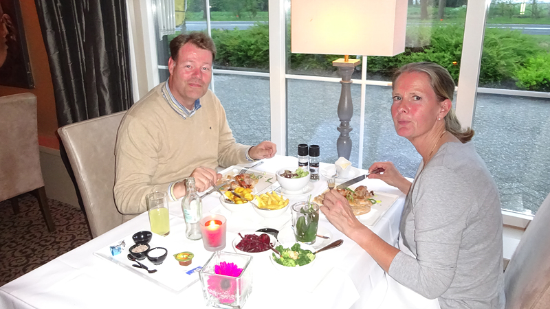 Hij is ook blij dat ik er weer ben want dan kunnen we eindelijk eens gaan eten. Op de kamer maak ik mijn broek een beetje schoon, trek een ander truitje aan en dan gaan we lekker eten. Een geslaagd einde van een drukke maar leerzame dag. Morgen weer een dag!