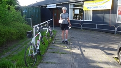 Het fietsen gaat goed en omdat er geen wind staat, rijden we iets harder dan normaal. Het laatste stukje hebben we eigenlijk voortdurend wind mee (voor zover die er is) en kunnen we nog iets harder doorrijden. S. heeft altijd mazzel want als we gaan rijden met de racefiets, staat er eigenlijk nooit wind. Wat nou afzien? Dat moet dus nog komen maar daarvoor hebben we nog wel tijd dit seizoen.