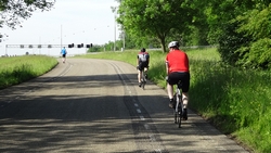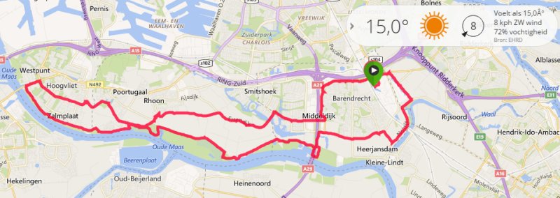 Na de inschrijving vertrekken we richting de Grienden. Dat is wel een aardig stukje waar wat natuur te zien is langs de Oude Maas. We komen hier natuurlijk eigenlijk nooit dus wat dat betreft is het wel aardig om te zien allemaal. Na de grienden rijden we richting Rhoon en daarna keren we weer om om richting Barendrecht te rijden. Gelukkig missen we nu geen keerpunten met de 75 en 125 km route die natuurlijk nog een stukje verder gaan.