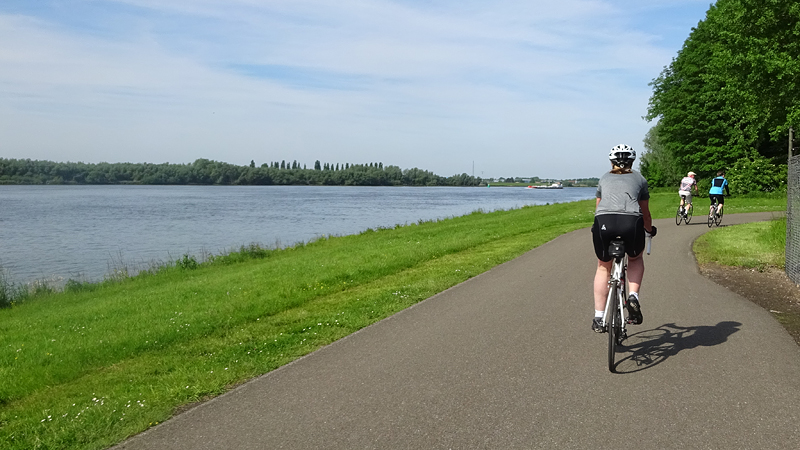 Het stukje terug over de dijk is wel aardig maar na de dijk is het weer volop bebouwing met fietspaden met kruisingen en oversteken. Ik vind er niet veel aan moet ik bekennen en rijd dan liever gewoon bij ons door de polder. Maar de Grienden en langs de Maas was wel leuk. Volgende keer vanaf een club toch liever iets verder rijden denk ik en dan ergens waar het mooi is. Dit is niks als startplek voor een korte route.