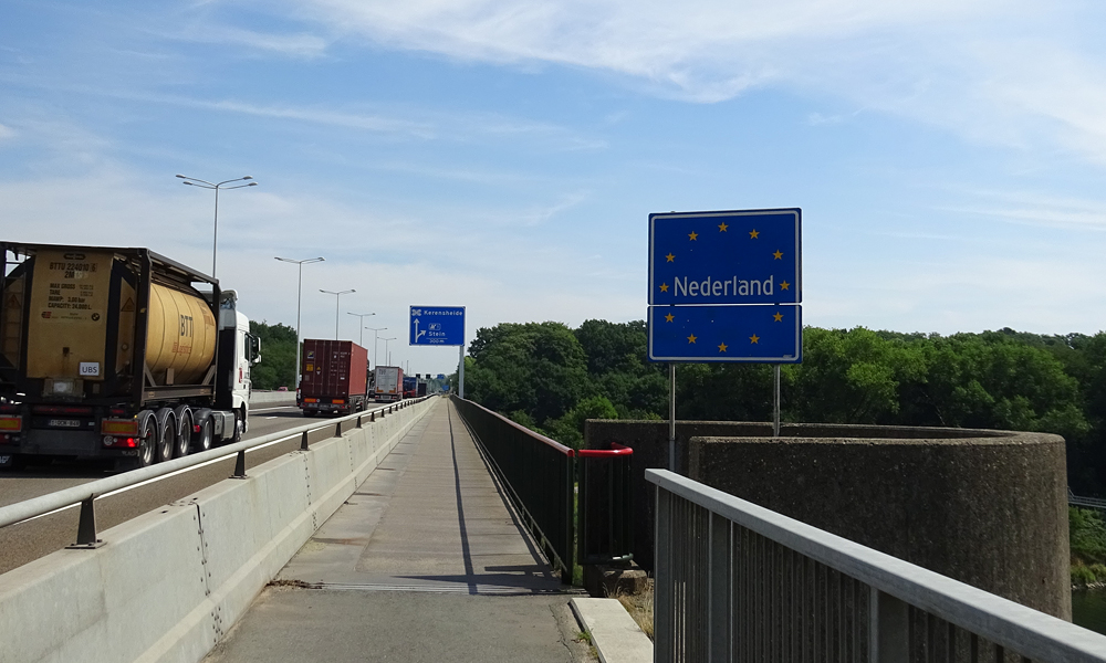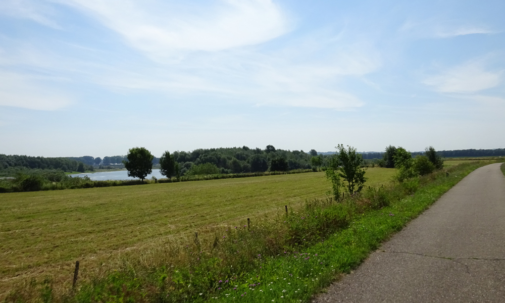 De route gaat kilometers lang langs het kanaal. Ik kom langs Maasmechelen waar ik overigens niets van zie en rond 11.30 sla ik linksaf richting de Maas. Ik ben nu weer bijna in Nederland en ik rijd straks langs de A76 en ga de Maas over.