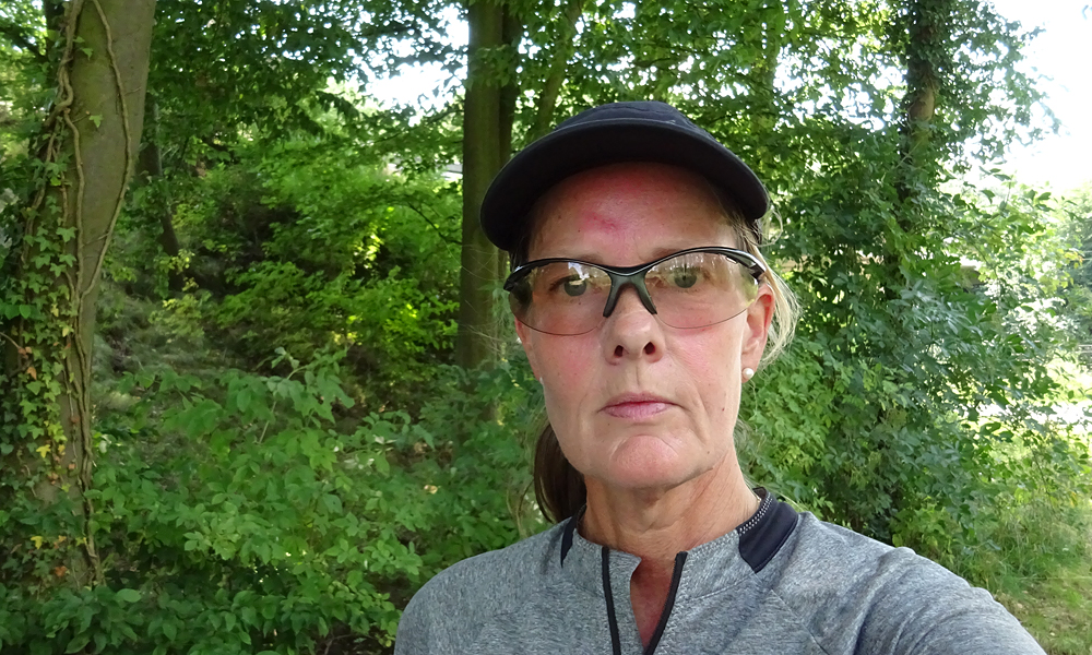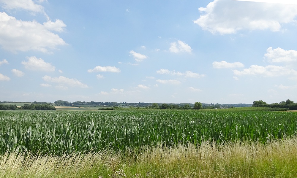 Even later zie ik iemand het straatje vegen en ik besluit om water te gaan vragen. De vrouw is heel behulpzaam en vult alles bij en geeft me zelfs nog een grote fles water. Nog meer mee te sjouwen maar ik heb nu wel genoeg bij me denk ik. Het is echt ontzettend warm. We raken aan de praat en ze vertelt van alles over de omgeving en haar dochter die bij Bever sport in Maastricht werkt. Ze kijkt goedkeurend naar mijn tassen en spullen. Als ze vraagt waar ik nu heenrijd, zegt ze meteen dat er heuvels zijn….. ‘zeg dat nou niet’ probeer ik nog maar nee hoor, ze blijft me vertellen dat er allerlei heuvels komen en dat het lastig fietsen is. Ik had al op de navigatie en route gezien dat de laatste 25 kilometer heel erg omhoog zouden lopen vandaag en ik kijk er ook niet echt naar uit, zeker niet met dit warme weer.