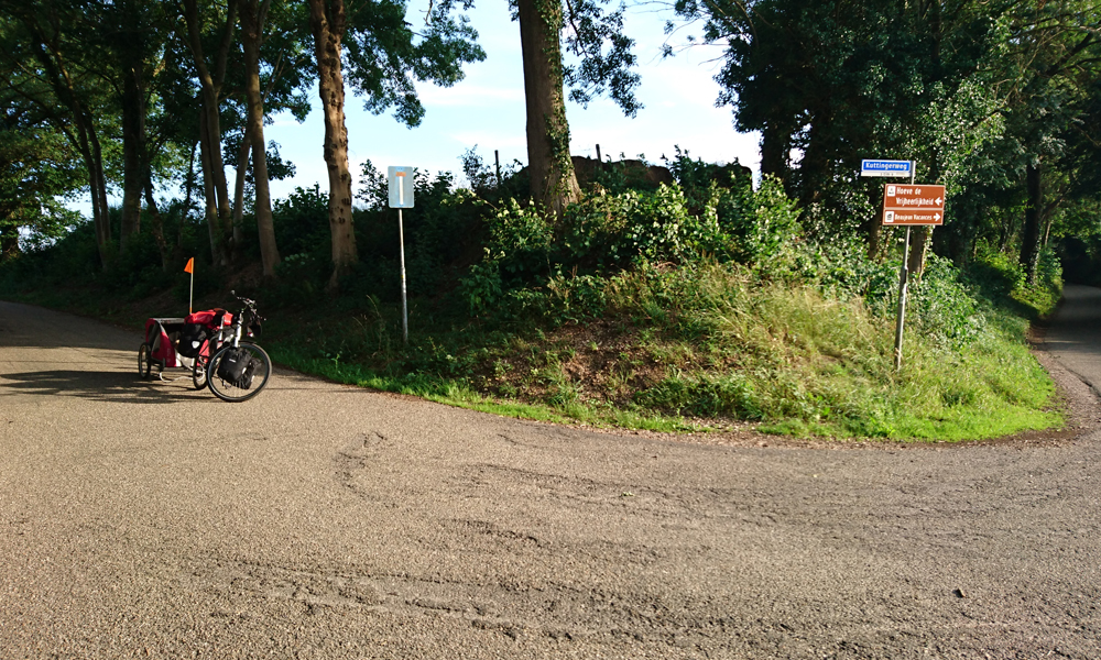 Natuurlijk staat de fiets er gewoon nog als ik terug kom en ik prop alles in mijn rack pack achterop en rijd weer verder. Even terug het dorp uit en weer linksaf richting het kanaal.