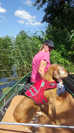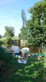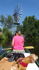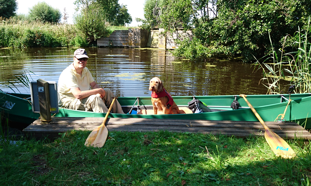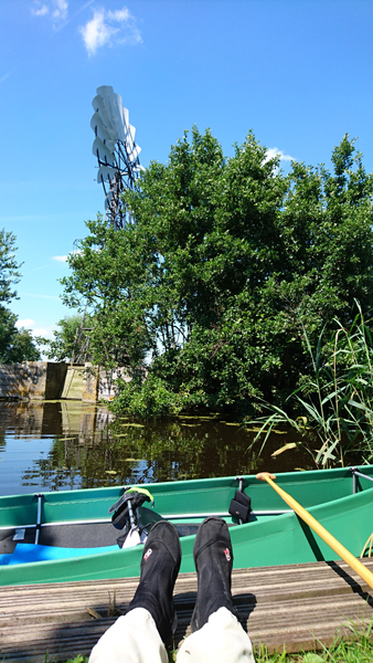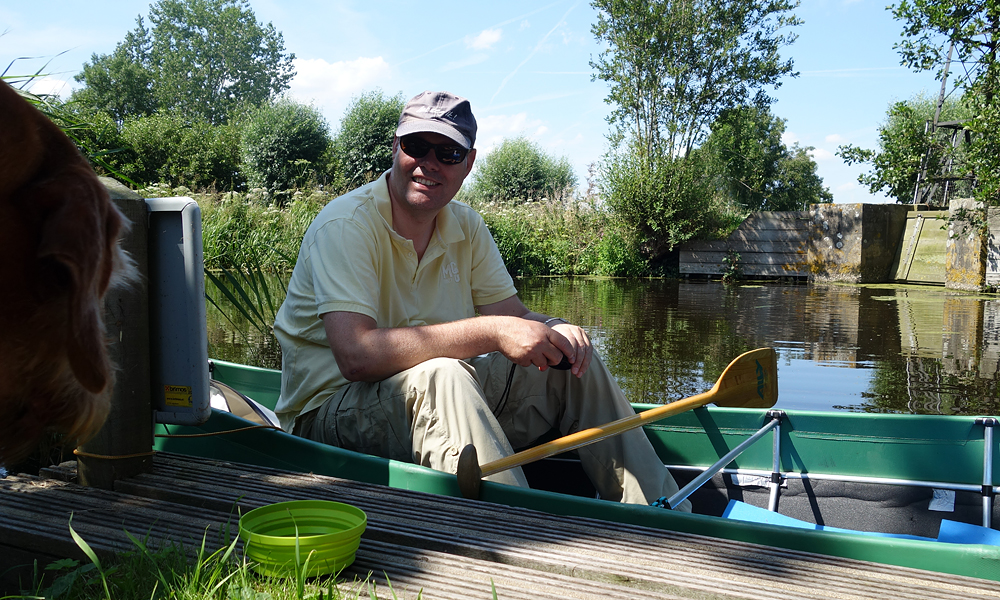 Na een klein half uurtje varen zijn we bij het steigertje bij het windmolentje waar we ook even aanleggen en woef eruit laten. Ik ben eigenlijk verrast dat het maar een klein half uurtje is sinds vertrek!