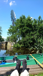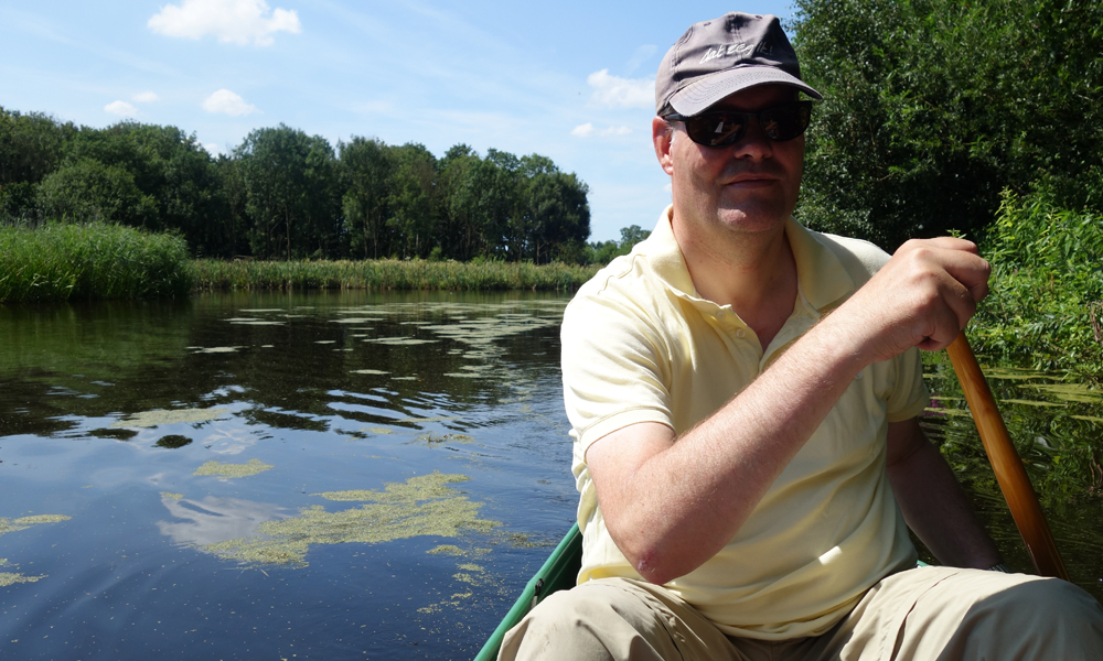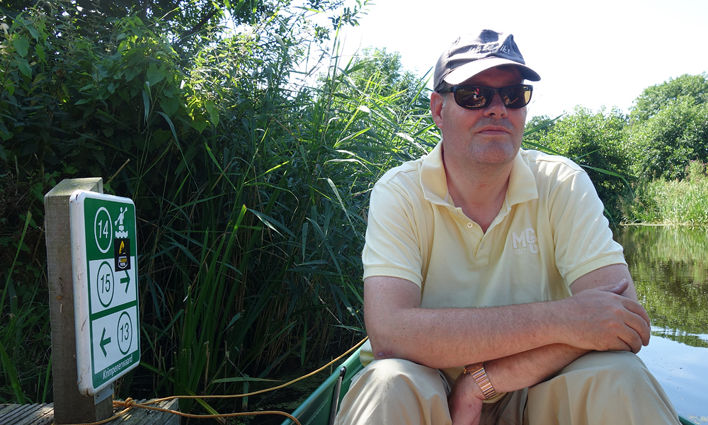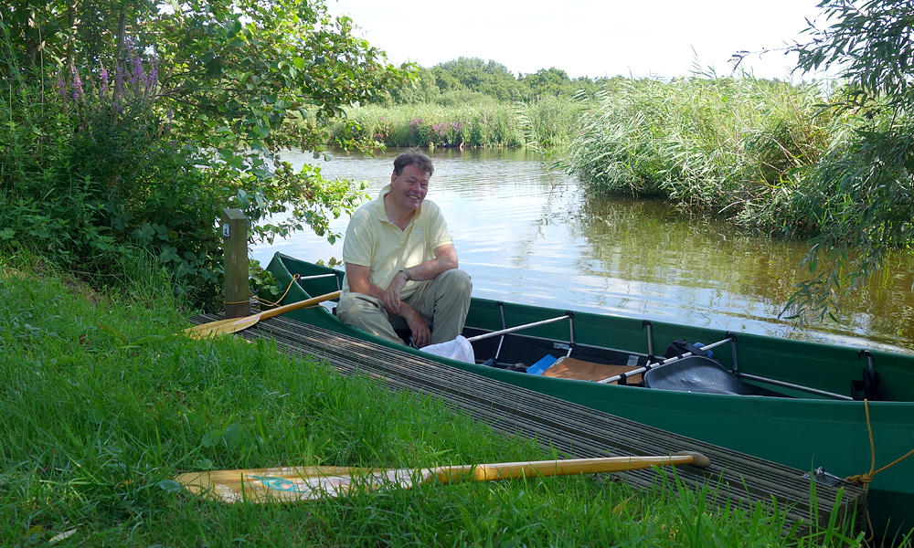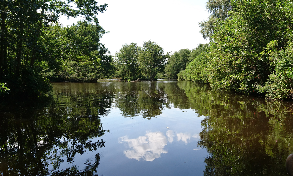 Rustig varen we verder over het stille water. Er is echt niemand omdat de verhuur niet op vrijdag verhuurt (tot onze verbazing). Alleen mensen met eigen bootjes komen hier en daar is dus geen sprake van vandaag. Er is flink gebaggerd de afgelopen weken en het water is mooi schoon. Vorig jaar lag hier nog een enorme dikke laag kroos waar je met moeite doorheen moest.