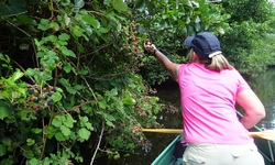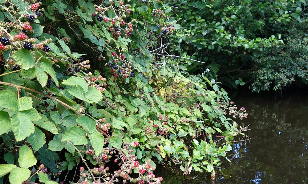 We varen richting steigertje 13 als einddoel maar wel heel rustig aan. Eerst even langs de kano verhuur en ook langs de eerste bramenstruiken met lekkere bramen. We plukken er een paar die ik lekker oppeuzel. Hier tenminste geen hondenpies erop!
