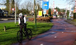 Even verderop rijden we alweer over de snelweg maar dat viaductje is ook een beetje zwaarder voor S. Even later rijden we langs het treintje en het oude station en dan schiet het echt op. Nog een paar kilometer en we zijn thuis. Na een kleine 41 km staan we voor de deur.