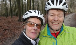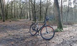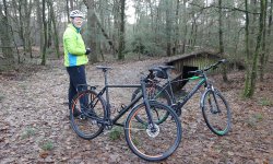 We zijn nog volop bezig aan het huis en in de tuin. Maar omdat het vandaag ineens heel mooi weer is, stel ik voor om een stukje te gaan fietsen op de cross fietsen die ik afgelopen donderdag wegbracht voor wat onderhoud. Geen idee of dat iets heeft uitgehaald maar dat zien we dan wel tijdens het rijden. Ik heb even moeite om een route te maken en op de Garmin te krijgen en ook zoek ik me natuurlijk rot naar mijn fiets spullen. S. heeft het al beter voor elkaar en heeft in ieder geval zijn kleding snel(ler) bij elkaar. Uiteindelijk staan we dan eindelijk om 13 uur klaar om te vertrekken. Voor het eerst staan de fietsen gewoon op een rijtje in de garage beneden. We moeten nog even gaan uitzoeken hoe we de spulletjes per fiets nu goed kunnen opbergen op de planken maar dat komt ook wel (zij het traag).