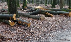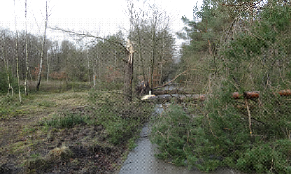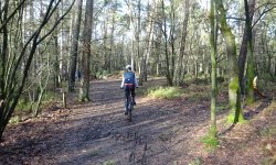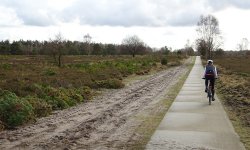 Na Nunspeet rijden we eindelijk over een mooier pad door het bos. We komen aanvankelijk in een groep die gelukkig een andere richting op gaat. Heerlijk rustig nu zonder die gasten om ons heen. Er zijn uberhaupt niet veel fietsers of wandelaars eigenlijk ondanks het mooie weer. Maar het is maar goed dat we op de cross fietsen rijden en niet met de racefiets. Overal liggen takjes en stukjes uit bomen en dat is op de cross fiets prima te doen maar op de racefiets zouden we echt op onze snufferd zijn gegaan.