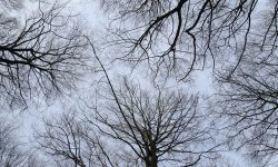 Ergens halverwege moet S. even een pitstopje maken. Ik maak een leuke selfie zonder me te realiseren wat ik dan op de achtergrond zie. Die gebruik ik dus maar niet voor deze pagina en gauw maak ik een nieuwe van S. en mij samen. Terwijl ik wacht kijk ik rustig naar de bomen om me heen en boven me.