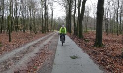 Na de pitstop fietsen we weer rustig verder. Ik heb het idee dat het niet heel makkelijk is voor S. vandaag. Nu zijn we niet alleen vrij vermoeid na alle huizen beslommeringen maar ik realiseer me ook te laat dat hij natuurlijk al eeuwen niet gefietst heeft. Normaal fietst hij veel vaker met me mee op mijn looprondjes en ook dat gebeurde al maanden niet. Verder was zijn laatste ritje tijdens de vakantie in de UK in september denk ik dus dat helpt ook al niet zo mee.