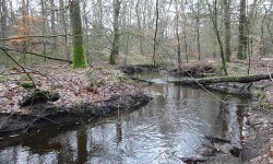 De route begint nu gelukkig wel op te schieten en we hoeven nog maar een klein stukje. Even langs de Leuvenumse Beek die ik nu eindelijk echt in volle glorie zie tijdens dit ritje. Ik was hier een keer vlakbij met een loopje maar was toen niet deze kant opgelopen omdat het al ver genoeg was om direct terug te lopen. Volgende keer toch hier eens heen denk ik want de paden zijn ook erg gemakkelijk om te belopen.